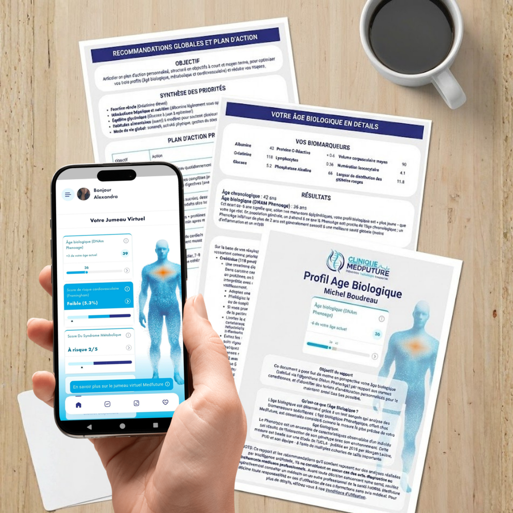 • Access to your biological age in real time on the Medfuture application